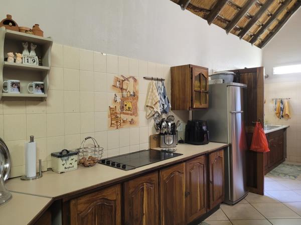 The beautiful, well-maintained lapa gives you that bushveld feeling and is about 100 square meters with a separate storeroom and a built-in braai, making it a must see for the entertainers out there.