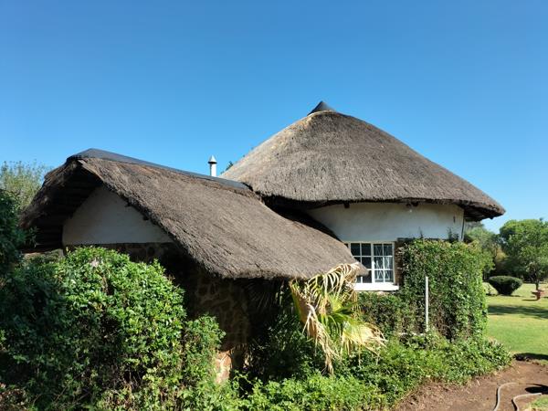 The main house is a double storey, thatch-roof home consisting of two large bedrooms, en-suite bathroom, a lounge with a working fireplace, a very large family room from where a staircase takes one to a 1st floor TV room or just a place for the family to chill out, a dining room, a kitchen with a pantry, all the right stuff that makes a farm kitchen more than just a place to make food!