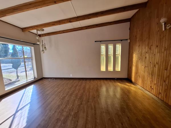 The house is located in a quiet residential suburb of Delmas and has four bedrooms with built-in cupboards, a beautiful kitchen that is larger than usual, a study, a living room, and a dining room that is separated from the TV room by a half wall. Two bathrooms with a separate toilet and one en suite. It is very convenient that there is a separate laundry room inside the house. This property boosts spaciousness in the living areas.