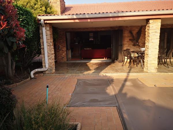 Modern house with 4 bedrooms and 2 modern bathrooms with open plan kitchen living area with dining room separate living area by the pool with separate 2 living areas for nanny and study and laundry room with 3 garages with 3 phase power and jojo tank and alarm system