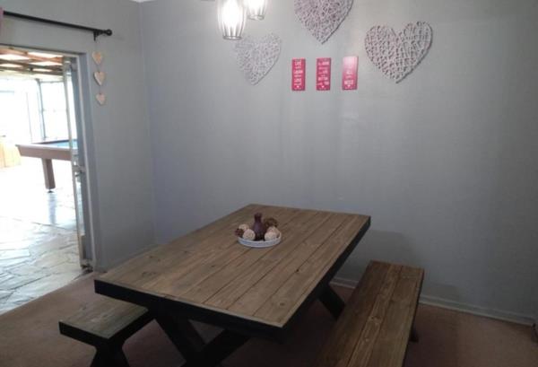 Step inside and discover a home designed for comfortable living. You''ll find two inviting lounges and a dedicated dining room, perfect for family gatherings or just chilling out. The living areas boast good natural light, with some featuring cool stone-look wainscoting that adds a rustic touch. The kitchen is a functional galley-style space, offering extensive light wood cabinetry, tiled floors, and plenty of counter space for all your cooking adventures. It comes equipped with a gas stove and a double sink, ready for your culinary creations, though a modern refresh could really make it pop. Adjacent to the dining area, there''s even a versatile entertainment space, currently housing a pool table imagine the fun!