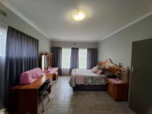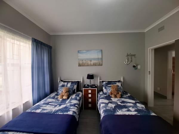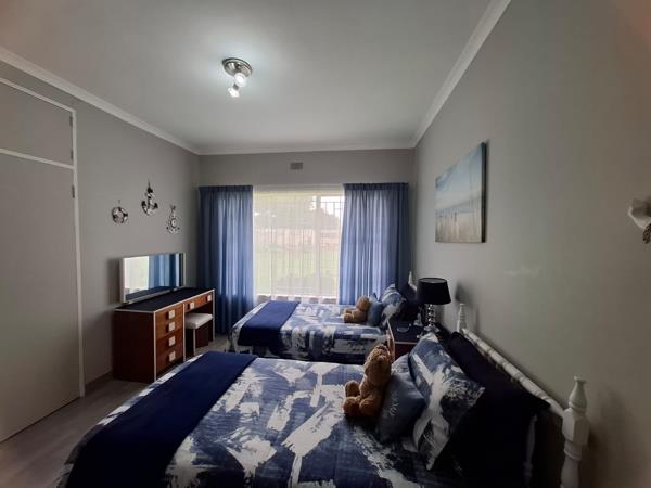 Featuring three spacious bedrooms, a study, a large open-plan living area, dining room with a built-in braai, and a kitchen, this lovely, meticulously maintained house is sure to wow. Two full bathrooms and an additional guest restroom.