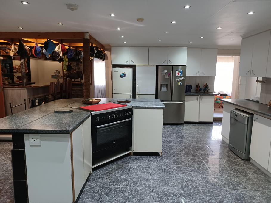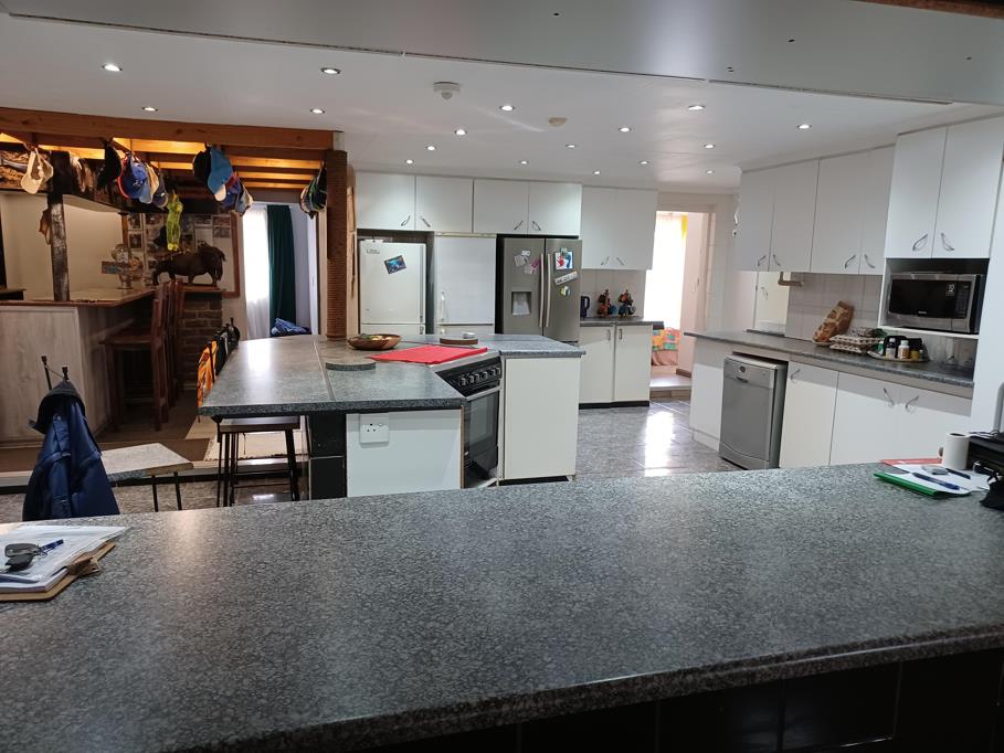 The garage is huge with parking for least 6 cars. In the garage you have a storeroom leading up to the ceiling with steps, you can use this for a workshop or storage space. Your front garden is under irrigation, and the property is walled on all 4 sides, with a electric entrance gate. The roof is zink and is recently renovated and rubberized with a 10 year guarantee .