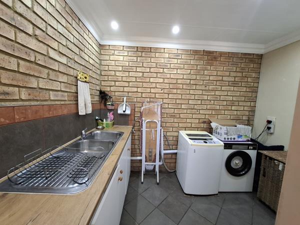 This property offers you 3 spacious bedrooms, 2 bathrooms, one en suite with a jet bath, a lounge, a TV room, a dining room, and a kitchen with a separate scullery. Lovely built-in braaiin entertainment area and a swimming pool to cool off in for the hot summer days, and a study. On one side of the house, with its own entrance, you have a one-bedroom flat that can be rented out for extra income. The garage on that side is a tandem long garage that drives through to the back and the workshops. Two Wendy houses that are used for storage, or you can use them as workshops. There is also a Wendy house that is used as a birdhouse and two 5000-liter YoYo tanks with a pressure pump to supply the house with water in need. The greatest thing in the backyard must surely be the HOT HOUSE!! Yes, you did not read wrong...this property has a hothouse that you can plant all your vegetables and herbs in for use in your home. Fresh right at your fingertips!. The hothouse and the garden have irrigation, so there''s no need to stand with a garden hose!. There are 3 entrances to the property the main gate leads to a big double garage with a double carport in the front. The gate is motorized. Second entrance gate to the flat, and the 3rd, to the side of the house. A beautiful, manicured garden greets you as you enter the property and is planted and looked after with love. 24-hour armed response alarm system, and property fenced with palisades and concrete walling at the sides and back. The house and flat have two separate pre-paid electricity meters.