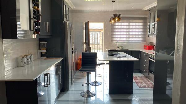 This beautifully maintained property in Embalenhle offers everything you need and more! Step into a modern kitchen featuring built-in cupboards, an island, electric stove, stylish blinds, and an open-plan layout that flows seamlessly into the spacious dining and living areasperfect for entertaining and everyday family life.