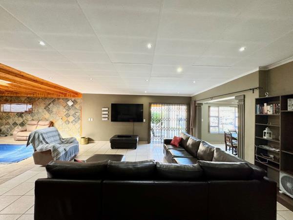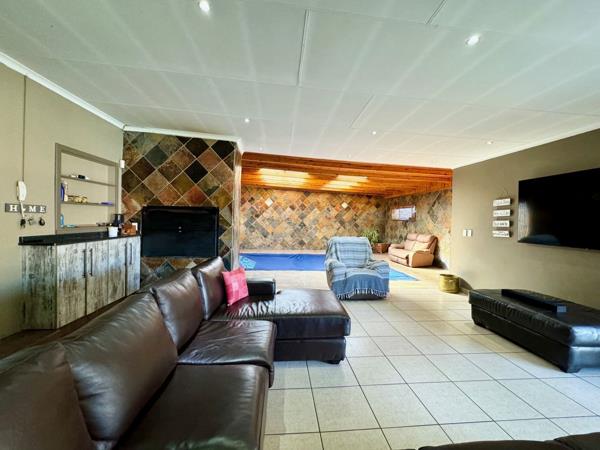 Spacious and modern family home.. Stunning open plan kitchen to indoor braai area and heated indoor swimming pool. Three very large bedrooms with wool carpets. Study. Lots of built in cupboards. Three bathrooms (2 en-suite). Double garage.
