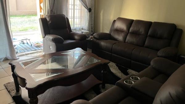 - Open-plan lounge, dining area, and kitchen with ample built-in cupboards