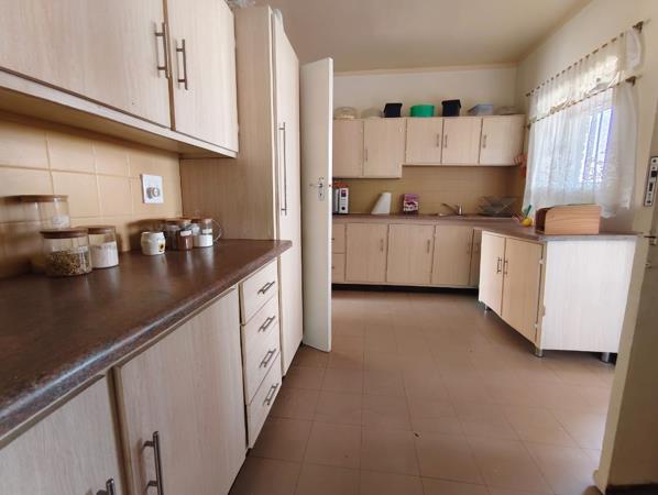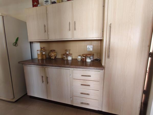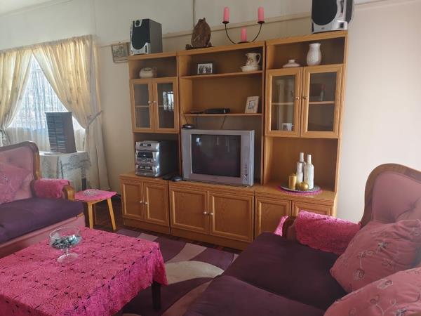 The stunning parquet floors are impeccably kept. The neat kitchen opens into an additional room. The stunning property includes an extended entertainment area, ideal for family gatherings or simply relaxing. The sliding doors open to the outside, inviting nature in. There are also cages that were previously used to house exotic birds. The property is fully fenced and offers a carport for two vehicles, as well as a lock-up garage for added secure parking.
