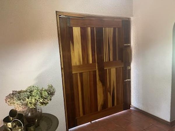 Additional features include an outside room with a bathroom, a double garage, a double carport, two separate entrances with a motorized gate, an electric fence for security, a 1.5kva inverter for power backup, a solar geyser for energy efficiency, and an irrigation system to keep the garden vibrant and lush.