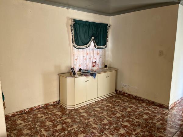 The house requires some TLC, including a fresh coat of paint. It has 3 spacious bedrooms, 2 full bathrooms, kitchen equipped with essential amenities, dining room and Sitting room. Outside it has a lockable garage and carport.