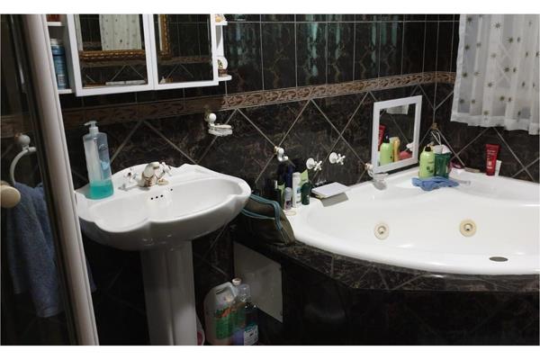 Extras: Jojo tank with electric pump, Solar geyser, Spa bath, Braai area, Alarm system, Beams, Electric gate, Brick-wall, Flatlet