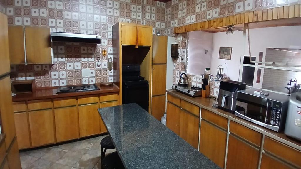 This spacious house is situated on a large stand of 1254m2 with an established garden with large trees.