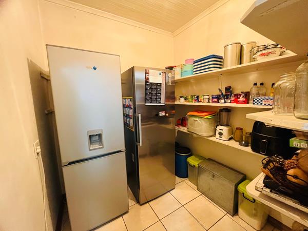 The kitchen is a home chefs dream, offering ample cupboard space, gas hob, eye-level electric oven, a walk-in pantry, and a separate scullery for easy organization.