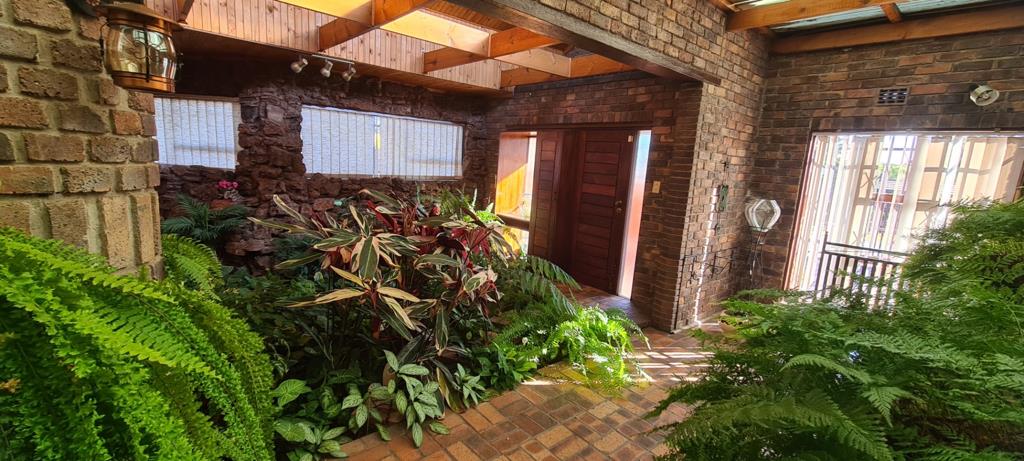 The interior of the home features an inviting entrance hall with a unique indoor garden, adding a touch of tranquility. There are three beautiful bedrooms and 2.5 bathrooms, providing ample space for a family. The living areas are designed for both relaxation and entertaining, including a sunny lounge and a separate dining room. The modern kitchen, complete with a scullery, is perfect for all your culinary needs. For socializing, a stunning indoor bar offers a fantastic space for entertaining guests.