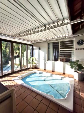 Jacuzzi is covered via Louvre roof, so it can be easily adjusted any time of the year.