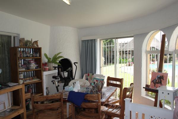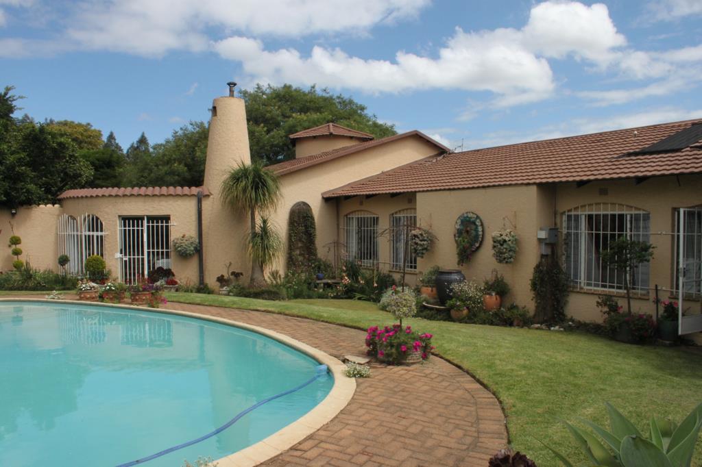 This 9 hectare farm is situated on the N2, where it is directly accessed from by an electric gate. This farm offers the Purchaser the following: A 5 Bedroom Home (1 Study) with 2 full bathrooms with gas geyser (main en-suite), a large rustic kitchen with an undercounter gas stove and electric oven, linen closet, Lounge with Fireplace, Dining Room, Sunroom with a built-in braai, ceiling fans, parquet flooring and tile flooring, a swimming pool, 2 boreholes, double garage with laundry and double carport. In addition you get a rondavel which has 1 bedroom with a kitchen (marble tops) and bathroom. Rental income opportunity: Two 1 bedroom flats with lounge and bathroom, as well as an office and workshops are available for rent. 3 phase electricity with two lines (1 for the house and 1 for the workshops). 15 Horse Stables and 4 Horse Camps.