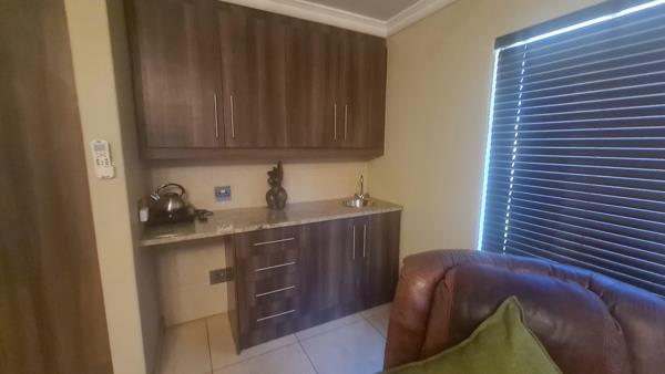 Modern double story unit in complex. Very spacious with large open plan lounge and dining room. An indoor braai with large sliding doors form part of the lounge area. The open plan kitchen is beautiful and modern with lots of cupboards. The scullery provide ample space for appliances like washing machine, dryer and dishwasher. All four bedrooms are on the first floor and served by two lovely bathrooms (mes). A pajama lounge close to the bedrooms is comfortable and convenient. The double garage provide direct access to the house -very secure. With all the good security this unit provides a safe haven for older couples or young first time buyers. Located perfectly in the green area.