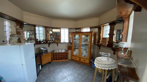 Two of the five bedrooms are located upstairs, sharing a cozy TV room and a charming fireplace perfect for relaxation. The entire house is tiled, with the main lounge offering a warm and inviting atmosphere, complete with a built-in bar and fireplace, ideal for those chilly winter nights.
