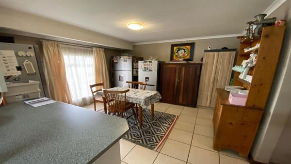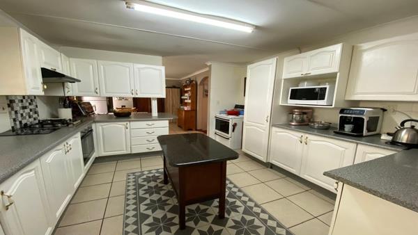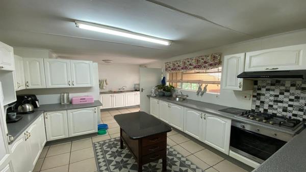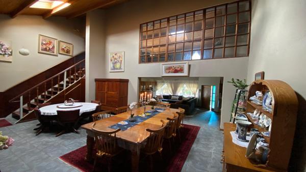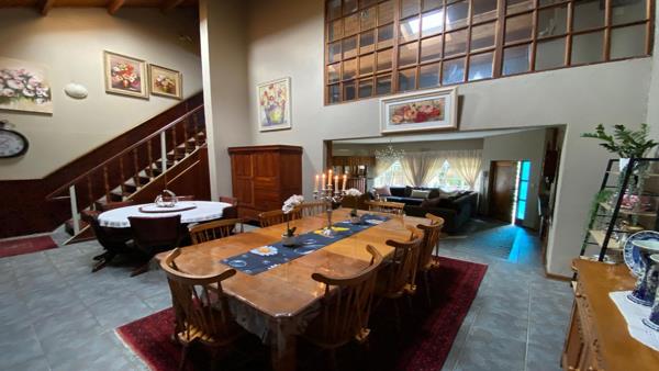 Summer entertaining is a dream in the braai room with a built-in braai, overlooking the exotic swimming pool area, beautifully surrounded by a lush garden.