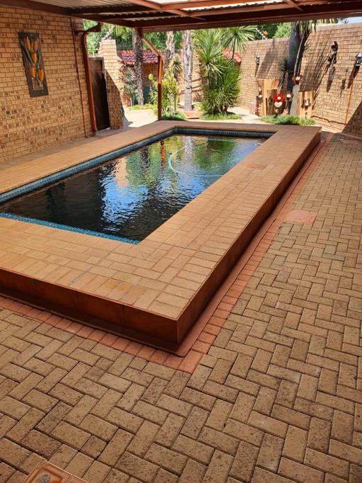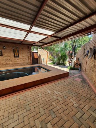 Beautiful facebrick home in the best area! Three spacious living areas, lovely kitchen with lots of cupboards. The bedrooms are filled with sunshine. Entertain with ease in the braai area, around the pool (under roof) or at the bar. The double garage provide safe parking. A one bedroom flat provide a perfect setting for grandparents. Security includes an alarm, beams, cctv and electric fencing. A battery and solar system are also included.