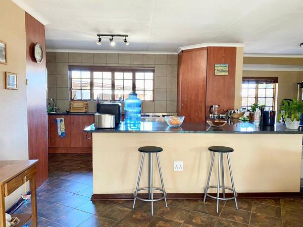 Open plan living at its best. Open plan kitchen with beautiful built in cupboards plus granite tops, huge bonus is the ELBA stove and oven combo. Kitchen even has a scullery area with built in cupboards, ample cupboard and counter space in this open plan kitchen.