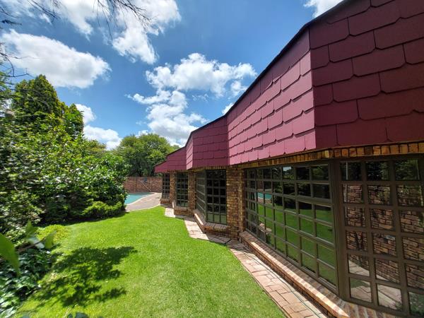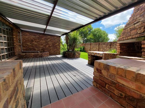 Beautiful facebrick home with aluminium window frames in a quiet cul de sac. The house boasts a breathtaking view on the duck pond. Spacious four bedrooms, two modern bathrooms, guest toilet. Three lounges, with fireplace, study, lovely kitchen with scullery. The patio and pool area provide excellent entertainment settings. Park safely in the double garage / carport. Extras include an alarm system, security beams, borehole, generator and JoJo tank. This unique home must be seen to be appreciated.