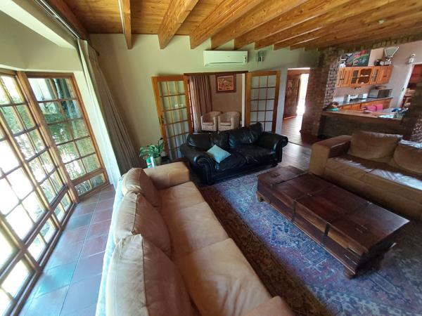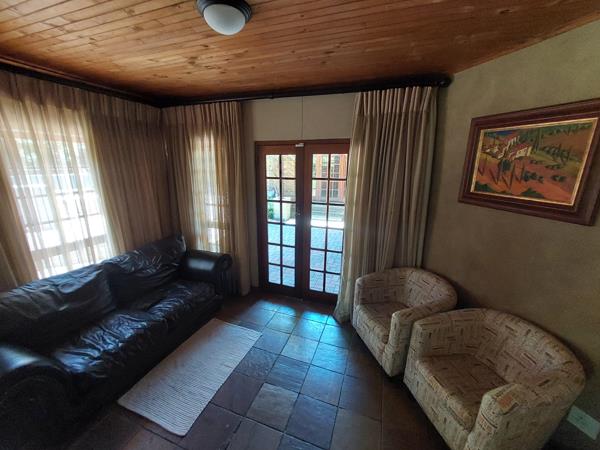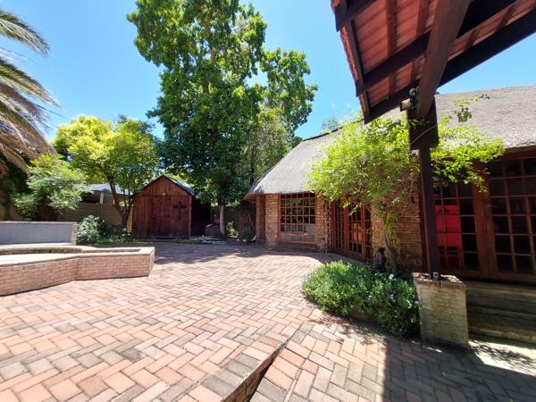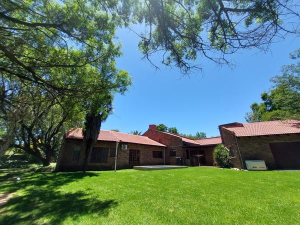 Perfect property with the perfect location at the perfect price! This lovely 5 bedroom home nestles in the green area and boasts spacious lounges, tv- and dining room. The kitchen is the heart of the home with a pantry, gas stove, and large laundry. Three bathrooms - all equally modern and beautiful. Entertain with ease in the large braai room - separat from the main house, with built in braai and bar area. On sunny days the large boma braai area is a perfect setting. Extra large outside buildings can be used as a workshop or storage room. The staff quarters boast a large bedroom and equally modern bathroom. Extras include a generator (electric/gas) irrigation system, security cameras and alarm system.