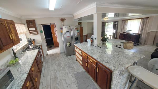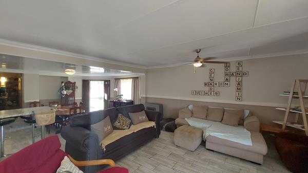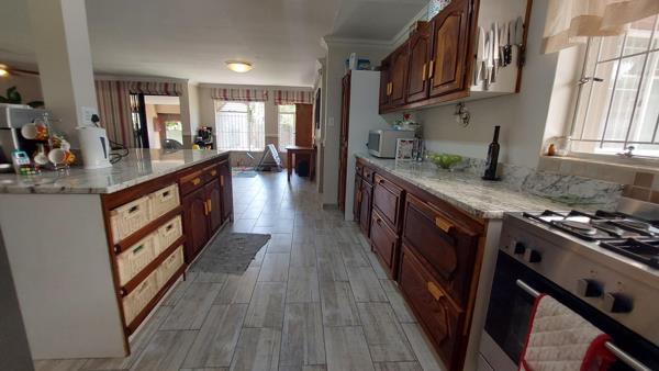 Located in a quiet established area, this home will be a perfect family home. Large open plan lounge and dining room. The kitchen is also modernly revamped and boasts a gas stove. The separate laundry can make life much easier. Four bedrooms and a large study can accommodate an extended family. The two bathrooms (mes) are also very neat. Entertain with ease in the adjoining braai room with built in braai. Three lock up garages and a double carport provide safe parking. An inverter with 10 solar panels and a 2500 liter JoJo tank are also included.
