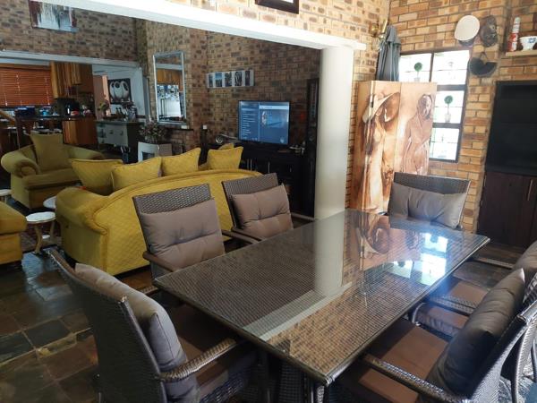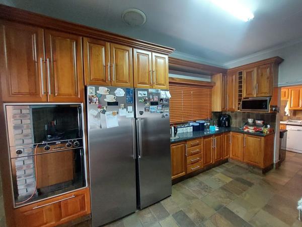 This stunning home is as neat as a pin! The outside of the house boasts a beautiful big garden all around the yard, a nice big pool and an entertainment area right next to the pool. The inside of the house offers a stunning open-plan kitchen with a scullery, 3 very spacious living areas, 5 bedrooms fit for a big family and 2 bathrooms. The main bedroom features a charming walk-in closet that connects seamlessly to the adjoining ensuite bathroom. The property has 2 garages and carports for 6 cars which gives you ample space for your cars and those of your guests. The property is highly secure, featuring 10 cameras and an electric fence to ensure robust security measures. Overall the property offers a beautiful, modern and comfortable appeal and convenient living!