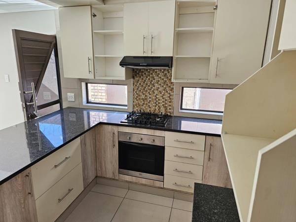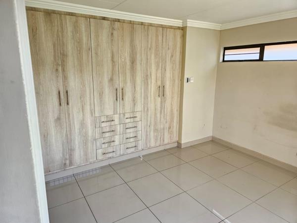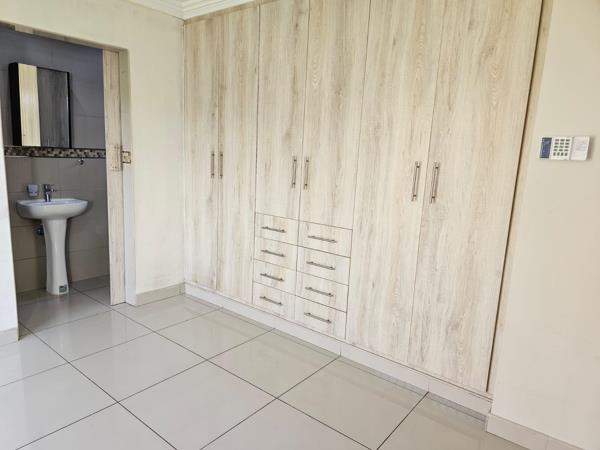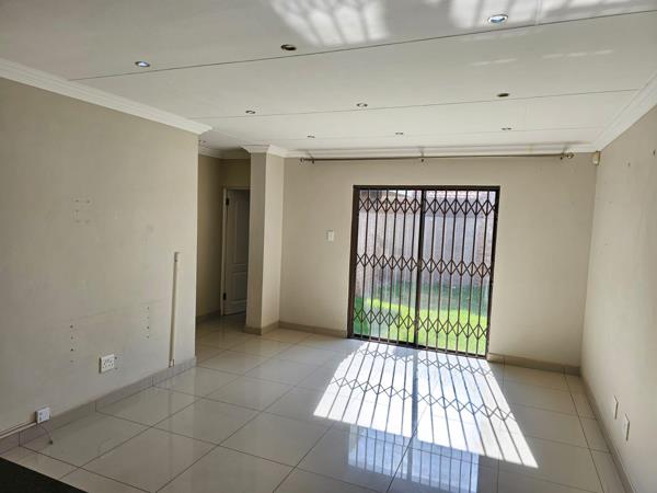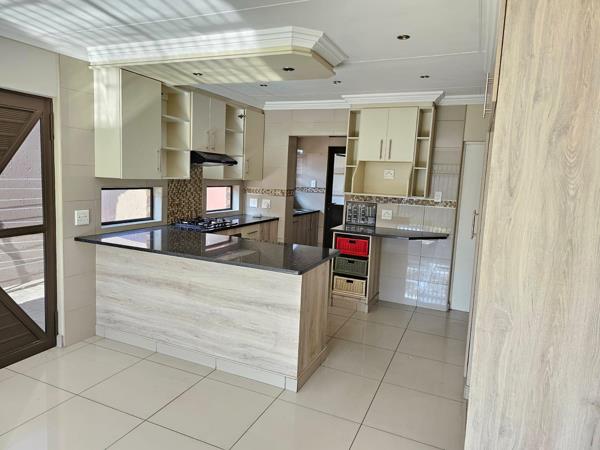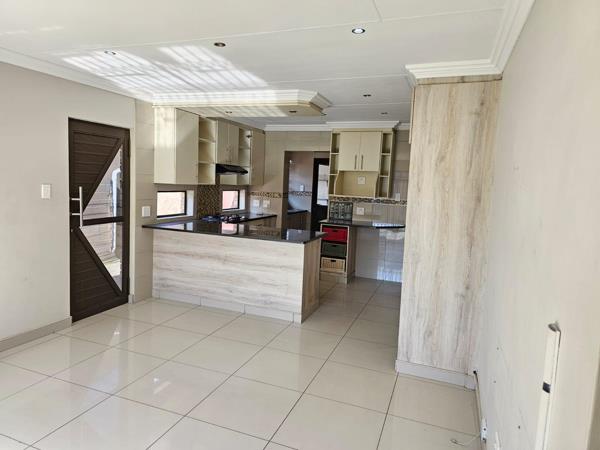 A lovely three bedroom home - small enough to maintain easily but spacious enough not to feel cramped. Modern open plan kitchen, lounge, two bathrooms (en-suite with shower and the other with bath). Tiled throughout. Can easily park three vehicles. Security include alarm, beams and cameras.
