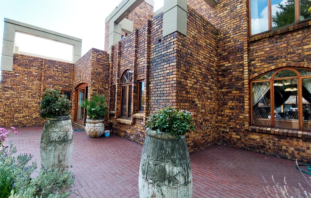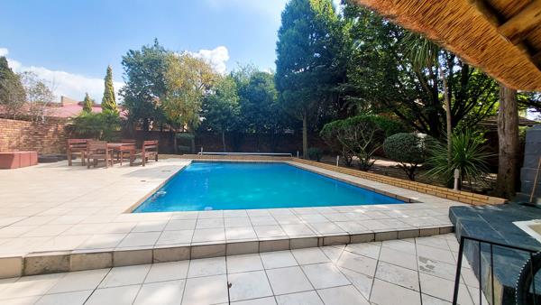 Luxurious 5 bedroom home in the best part of the green area. Spacious dining room, two lounges, bar and modern open plan kitchen. A separate scullery adds to the convenience of the lay out of the house. Four bedrooms on the first floor with two bathrooms (mes). Three of the bedrooms have direct access to the balcony. The fifth bedroom on the ground floor can either be used as an extra lounge. Large glass doors in the main lounge open on the pool area. A spacious thatched lapa with braai offers the ideal setting to entertain. Three lock up garages with auto doors provide safe parking. An inverter with batteries provide back up during loadshedding.