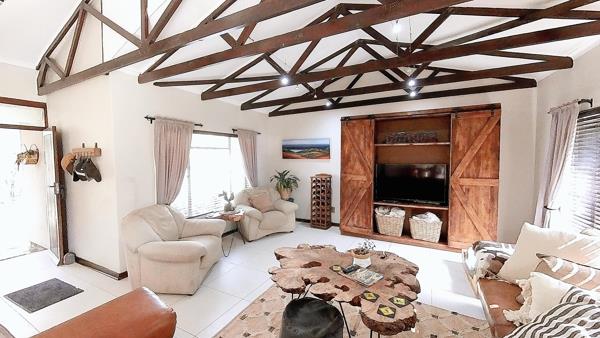 Now, this space here is one of my favorites the entertainment area. Its big, its comfortable, and you can braai here any time of year, rain or shine.