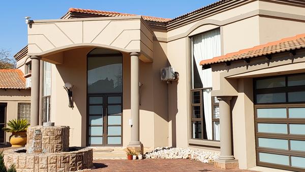 This prestigious home is located in a prime area and offers luxurious features. Enter in a double volume entrance hall - big enough to host a large lounge/dining room with ease. Two extra lounges provide options to be used as tv room or formal lounge. The kitchen is equally spacious with modern fittings and more than enough cupboards. A separate scullery is perfect to fit appliances. The extra large study provide direct access from the garage. The spacious garage fit four vehicles with ease and also boasts auto doors. Three bedrooms- all with on-suite bathrooms.. The master suite boasts a large walk in closet. The best feature of this lovely home is the extended entertainment room. The stacking doors convert this area in an entertainers dream. The sparkling pool provide a relaxing scene. A built in bar and braai with a jacuzzi offer perfect options to live an entertainer''s dream! The large corner stand includes safety features as beams, cameras, electric fencing and alarm. Extras include aircons throughout the house, aluminium window frames, inverter and solar panels. Luxury at its best.