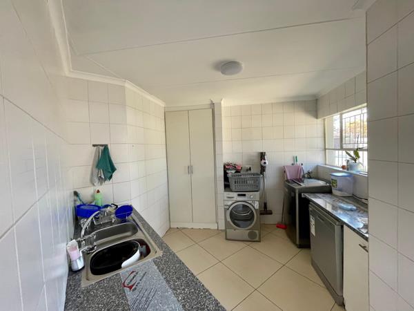 The expansive kitchen is a chefs delight with a breakfast island, ample cupboard space, and a large scullery/laundry area.