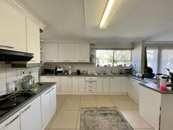 Set on a massive erf, this high-ceiling home features a fully tiled, open-plan design.