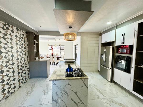 Descending to the lower level, you are welcomed into an open-plan kitchen, outfitted with contemporary fixtures. The centerpiece is a stylish island adorned with Caesarstone countertops, complemented by sleek, built-in melamine cupboards. The kitchen''s design ensures all cooking appliances are strategically placed for both functionality and aesthetics. Adjacent to the kitchen is the open-plan dining area, where high ceilings and elegant lighting fixtures create a captivating ambiance.