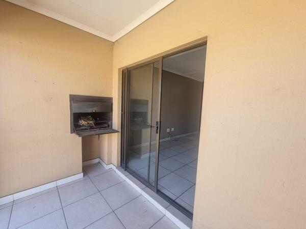 This unit offer a lovely modern kitchen with a gas hob and electric undercounter oven as well as a dishwasher/washing machine connection point. There is ample space for a big fridge & freezer. The spacious lounge is open plan with the kitchen and walks through a sliding door onto the balcony where you will find a built-in braai. There is 24/7 strict access control. The property is managed very well and is always impeccably neat. Call Rinie to view.