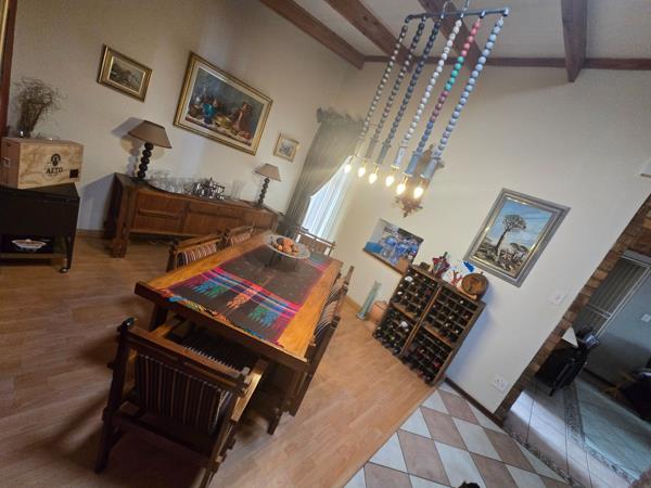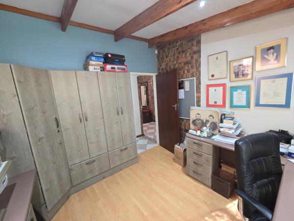 - Lounge area, study with built-in cupboards, and elegant dining area