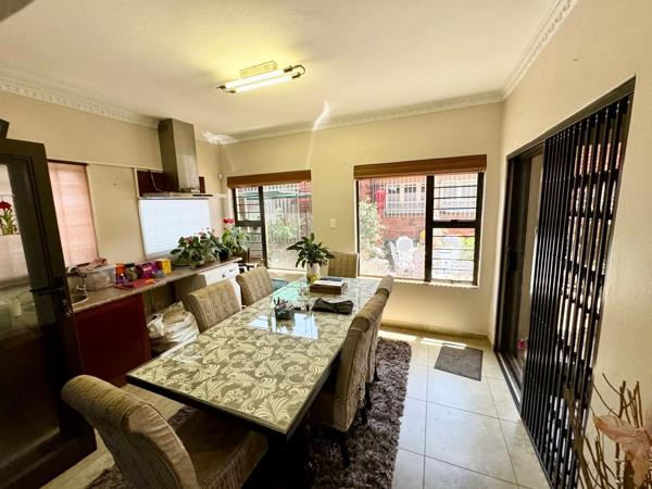 The main house welcomes you with a spacious entrance hall that leads into three distinct living areas. One of the living areas opens onto two patio spaces, perfect for outdoor dining or relaxation, while another features an enclosed verandah, which can also be used as a study area. The third living area, illuminated by a skylight, serves as the perfect dining room for family gatherings. The well-appointed kitchen is equipped with solid Saligna wood cupboards, sleek dark granite countertops, a pantry cupboard, an eye-level oven, a four-plate electric stove, and a cozy breakfast nook, creating the perfect space for everyday meals. Additionally, there is an outside laundry room, adding convenience to daily living.