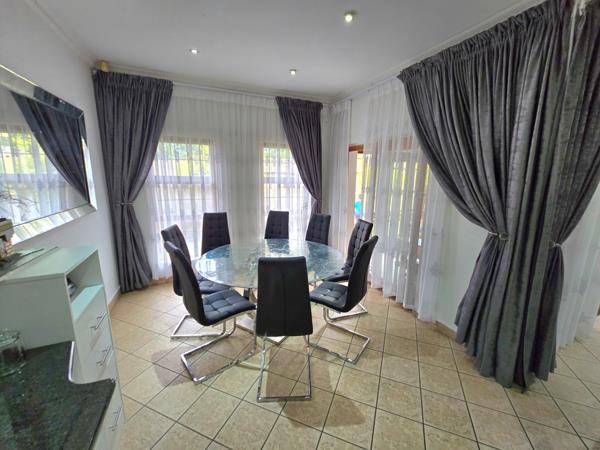 - Beautiful dining area with large windows, flooding the space with natural light