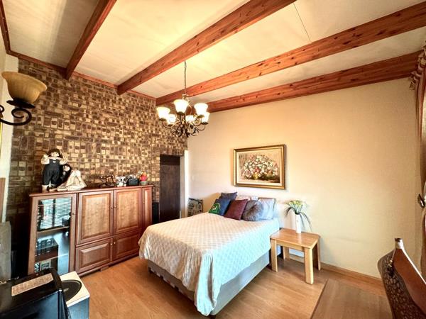 The open-plan kitchen is a standout feature, designed with functionality and space in mind. It boasts a large breakfast nook, ample built-in cupboards, and generous counter space. Equipped with a five-burner gas hob and a gas oven combination, it''s a dream for home chefs. The kitchen also includes a scullery with a double basin and connection points for appliances, keeping the main space neat and organized.