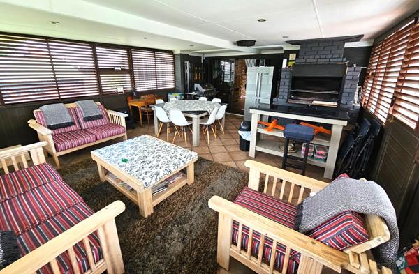 Open Plan Lounge (with a lovely Fireplace) and Dining Room, opening onto a Spacious Entertainment Room offering a Large Build in Braai. Large Secure Windows on 3 walls, Louvered Shading, Extractor Fan. Plenty of room for a Pool Table and a Build in Bar.
