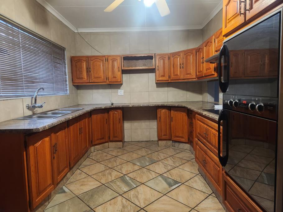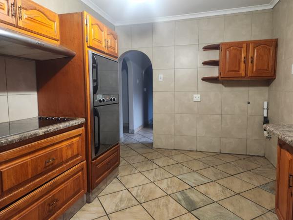 The kitchen is a standout feature with its solid oak cupboards, glass hob, extractor fan, and an eye-level double oven, making it a chef''s dream. The open-plan lounge and dining area is spacious and welcoming, complete with a cozy fireplace for those chilly evenings. There are two bathrooms the first one includes a bath, toilet, and basin, while the second offers a shower, basin, and toilet. Throughout the home, high-quality tiles flow seamlessly, creating a sleek, uniform look. For added security, all windows are fitted with sturdy trellis security bars. The property also comes with a double carport, offering sheltered parking for two vehicles.