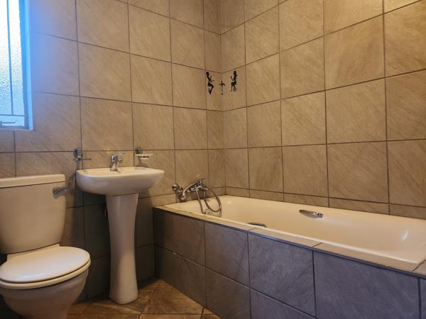 The flatlet, which has its own private entrance, features a modern kitchen with an electric hob and oven, as well as space for a washing machine. The open-plan lounge is bright and airy, connecting easily to the kitchen. The bedroom is spacious, and the bathroom includes a shower, basin, and toilet. There is also a carport that can accomodate two small cars infront of the flat.