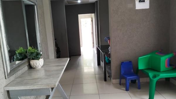 This lovely modern home in Bethal offers five spacious bedrooms, including two with separate access to an en-suite bathroom. The property features 2.5 bathrooms, an open-plan lounge and dining area, and a cozy lounge with a fireplace. The kitchen boasts sleek, modern cupboards, while a generous entertainment area with a built-in braai makes it perfect for hosting guests. Additional highlights include a double garage and a large yard with potential for a second house or flats. While the home requires some finishing touches and TLC, it is a true gem in a peaceful neighborhood. Contact me today to arrange a viewing!