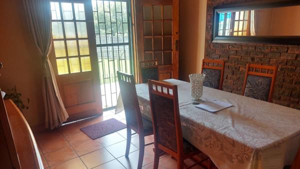Spacious dining room with door leading out onto patio with built-in braai