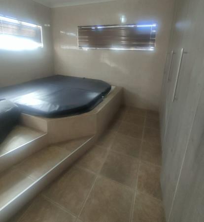 4 bedrooms, all with built in cupboards and tiled throughout. Main bedroom has a studygym space, with a luxurious Suprise of a jacuzzi. 3 bathrooms mes, enclosed braaientertainment area with patio, indoor pool, and a stunning hip kitchen with scullery and added modern finishes.