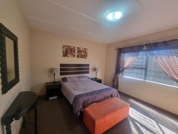The property is in a good area close to amenities. It is quite spacious with an open plan lounge and kitchen with a breakfast nook, sizable pantry, hob & oven. The bathroom has a bath-shower combination, basin & toilet. Both bedrooms have built-in cupboards and carpets. All the other areas are tiled. The unit has one lock up garage. Call Rinie to view