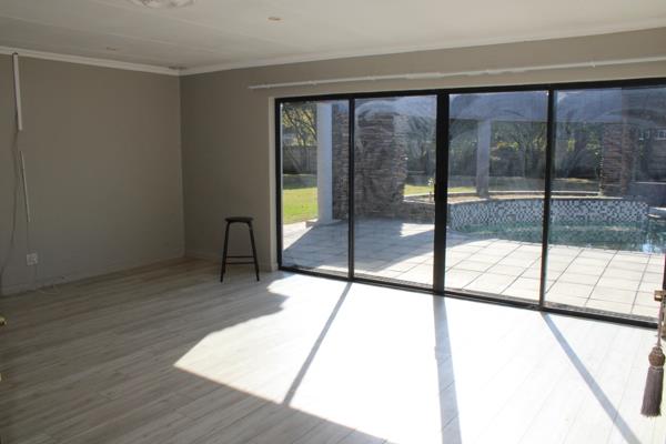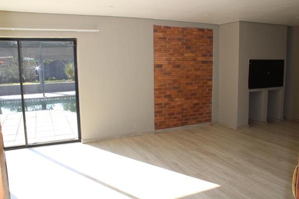 The one lounge and braai and entertainment area have big sliding doors opening up to the pool area and beautiful garden, ideal for dinner parties and entertaining guests.