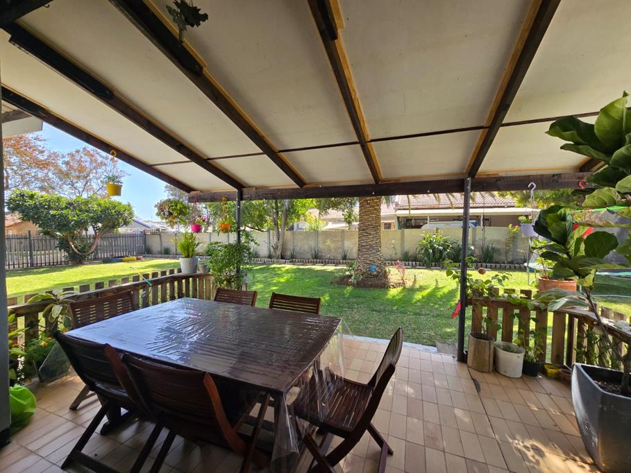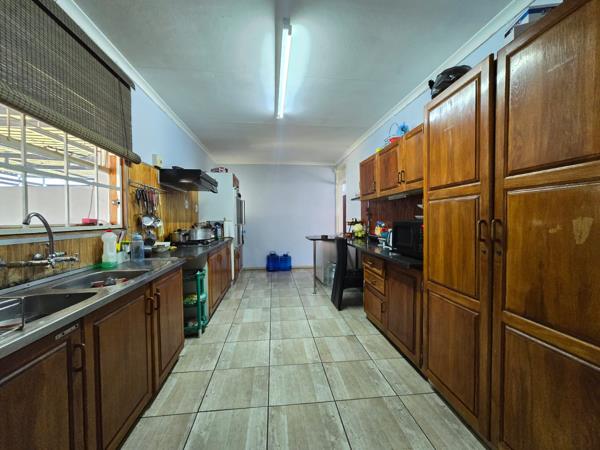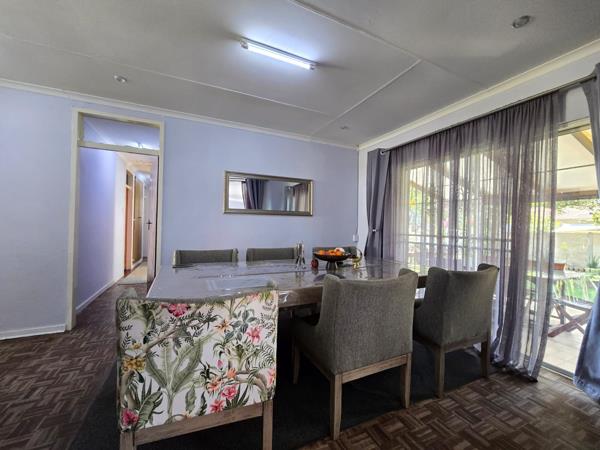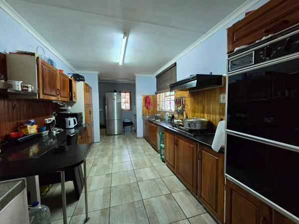 Inside, the home features two generous living areas, with an airconditioner in the lounge to keep things cool and comfortable. The kitchen is fitted with solid wood built-in cupboards, a gas hob with extractor fan, and a double electric eye-level oven making it a dream for home chefs.